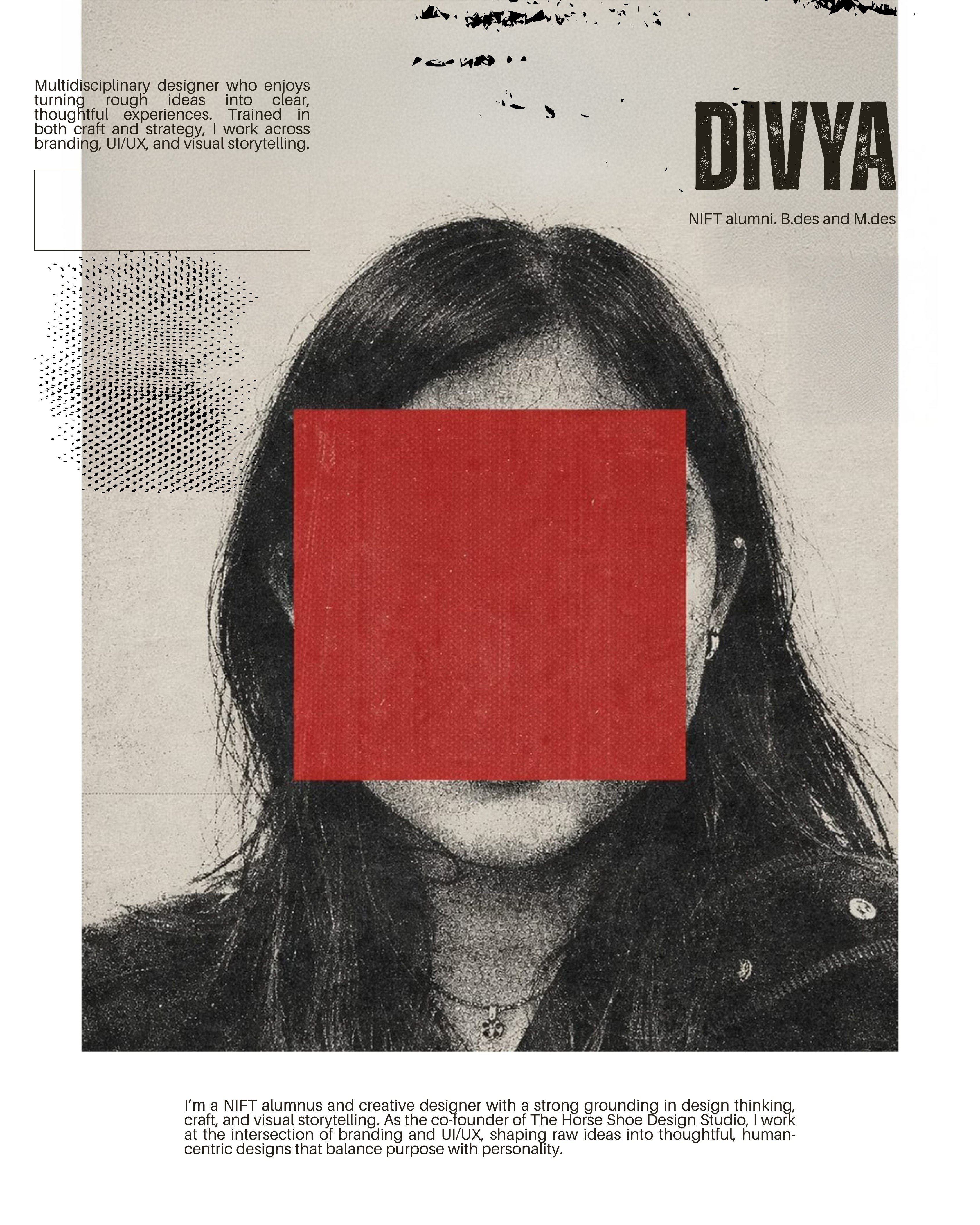 Divya is a NIFT alum through and through — undergraduate and postgraduate from NIFT Delhi, because once clearly wasn’t enough. She’s the kind of designer whose brain never clocks out. An overthinker by default, but in the useful way — the kind that asks why before wow.