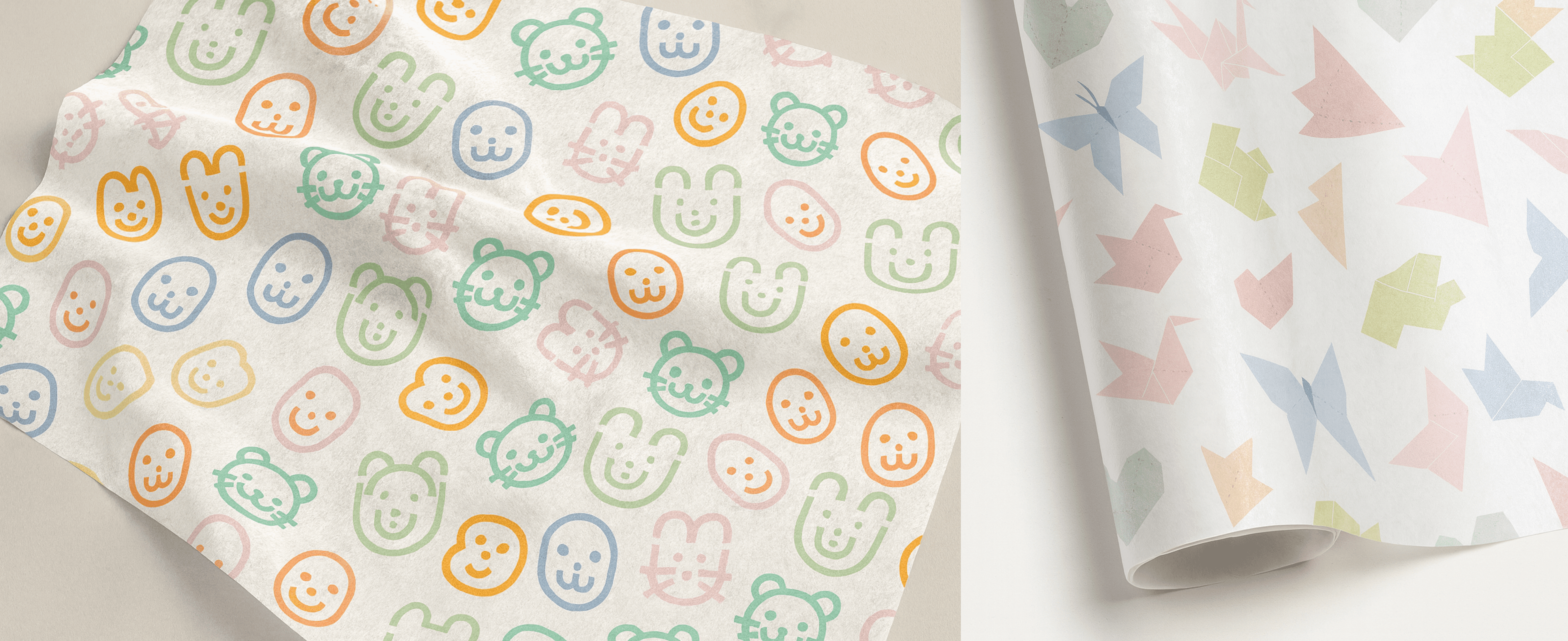 To extend the brand beyond the primary logo, I designed a series of repeat patterns featuring friendly, minimal animal faces—bunnies, bears, tigers, and simple smiley characters. These illustrations echo the same line quality as the logo: soft, playful, and intentionally imperfect. The patterns are flexible enough to be used across clothing, packaging, tags, wrapping sheets, and digital collaterals.The illustrations were purposely kept simplified, resembling the spontaneous doodles a child might draw on paper. This approach keeps the brand light, joyful, and instantly relatable for both kids and parents.